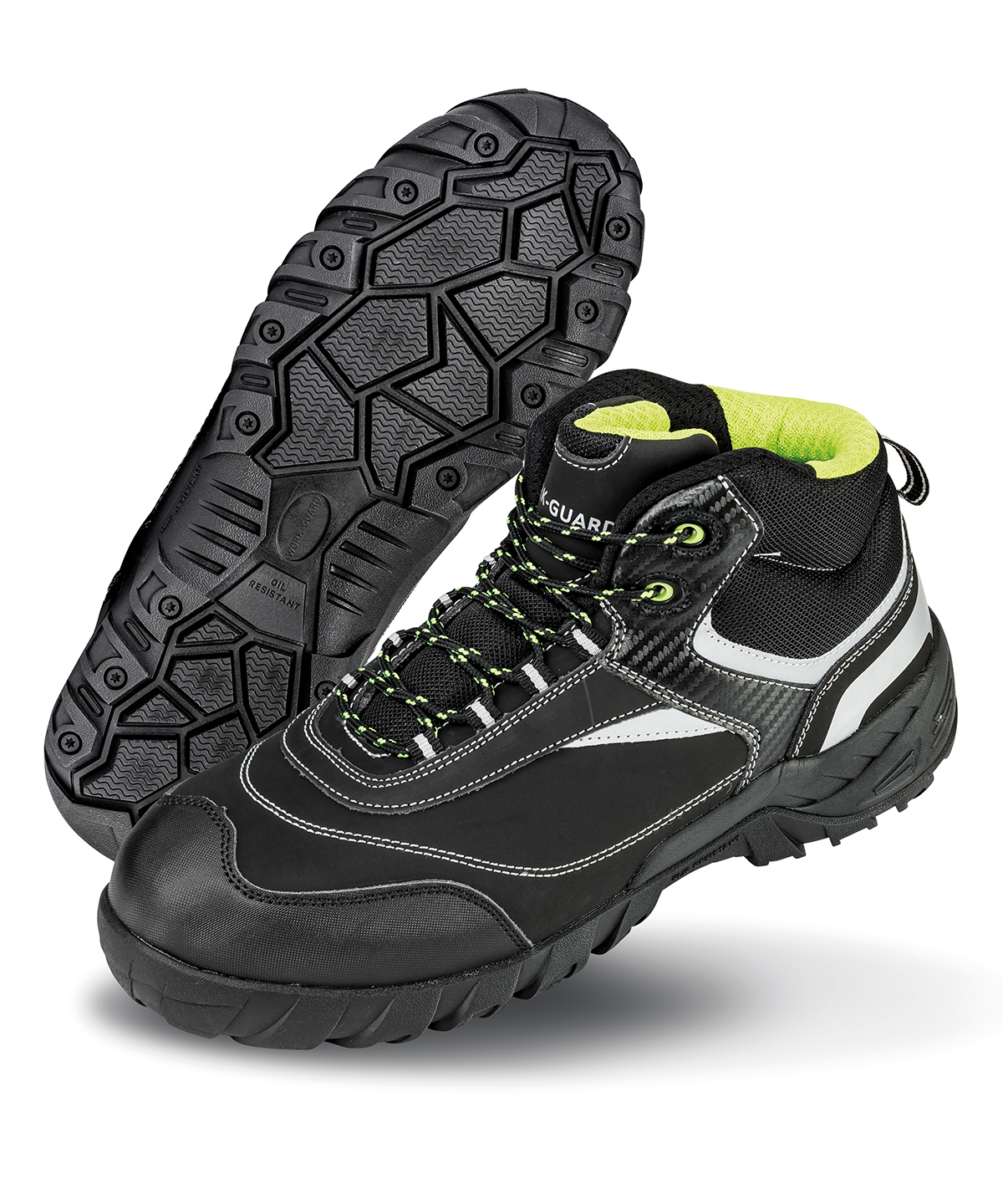 This breathable, water resistant high top safety boot blends protection and style with ease. S3 classification, anti static and SRC slip resistance along with scuff cap and reflective details combine to bring you the next generation of RESULT’s safety footwear choices. In a classic black nubuck leather with understated green flashes you can feel safe and secure in the Blackwatch! Conforms to EN 20345:2011 S3 SRC.