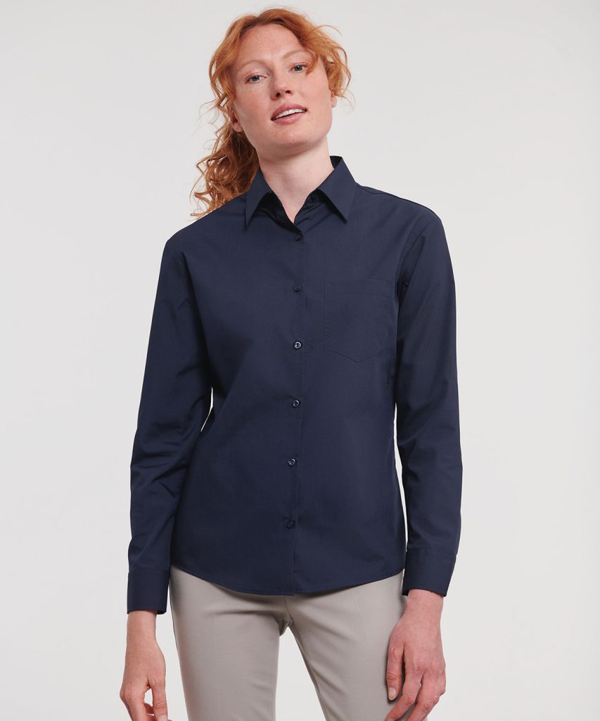 Russell Collection – Womens Long Sleeve Polycotton Easycare Poplin Shirt J934F