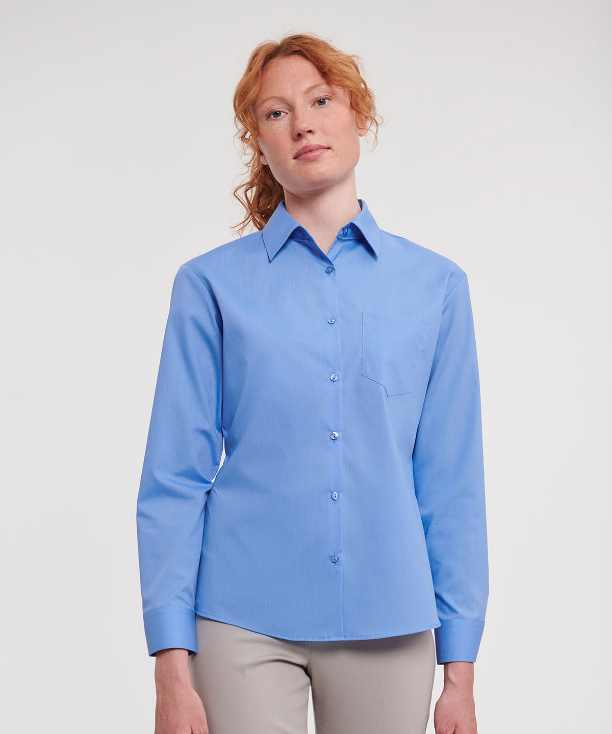 Russell Collection – Womens Long Sleeve Polycotton Easycare Poplin Shirt J934F