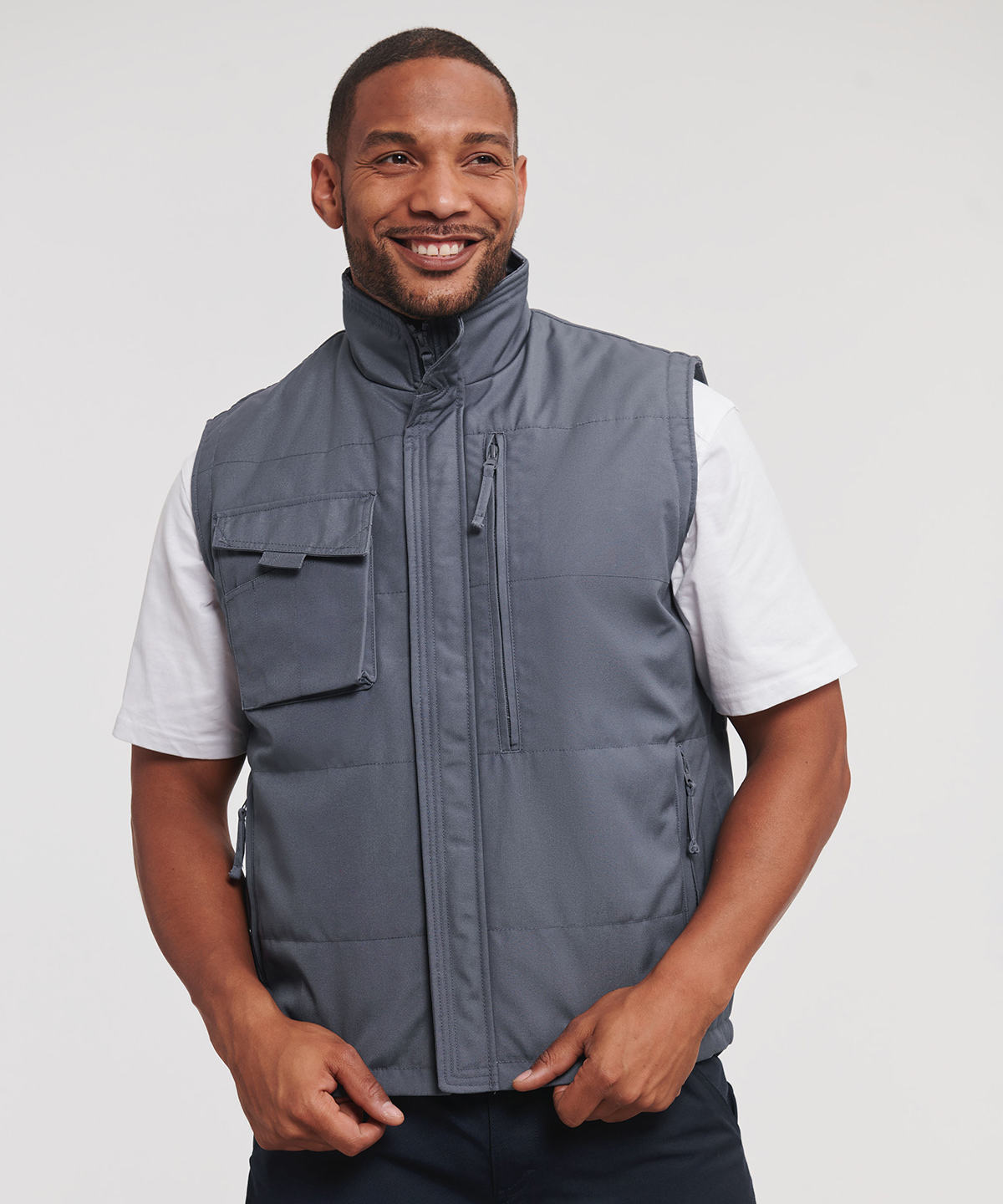 The hardwearing outer material makes this warm, wadded gilet most suitable for heavy duty work environments. Versatile pockets provide storage space for all-important items large and small (including A4 documents – unfolded!).