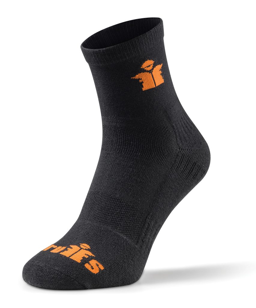 Warm, quarter-length work socks made from breathable mesh fabric which maximises airflow to the skin, keeping feet cooler. Cushioned heel and toe for comfort. Elasticated ribbed arch and heel support. Ideal for wearing with boots or trainers.