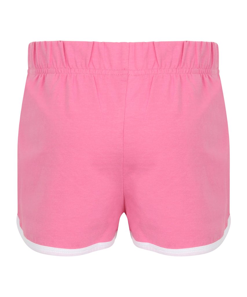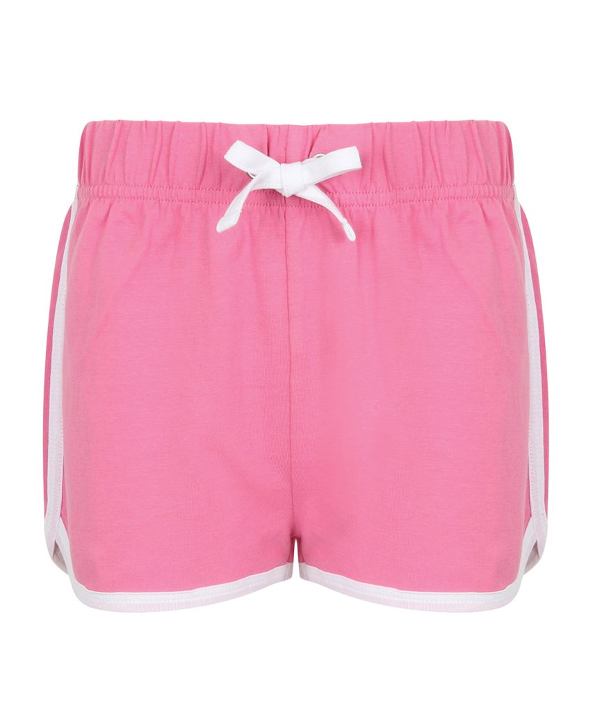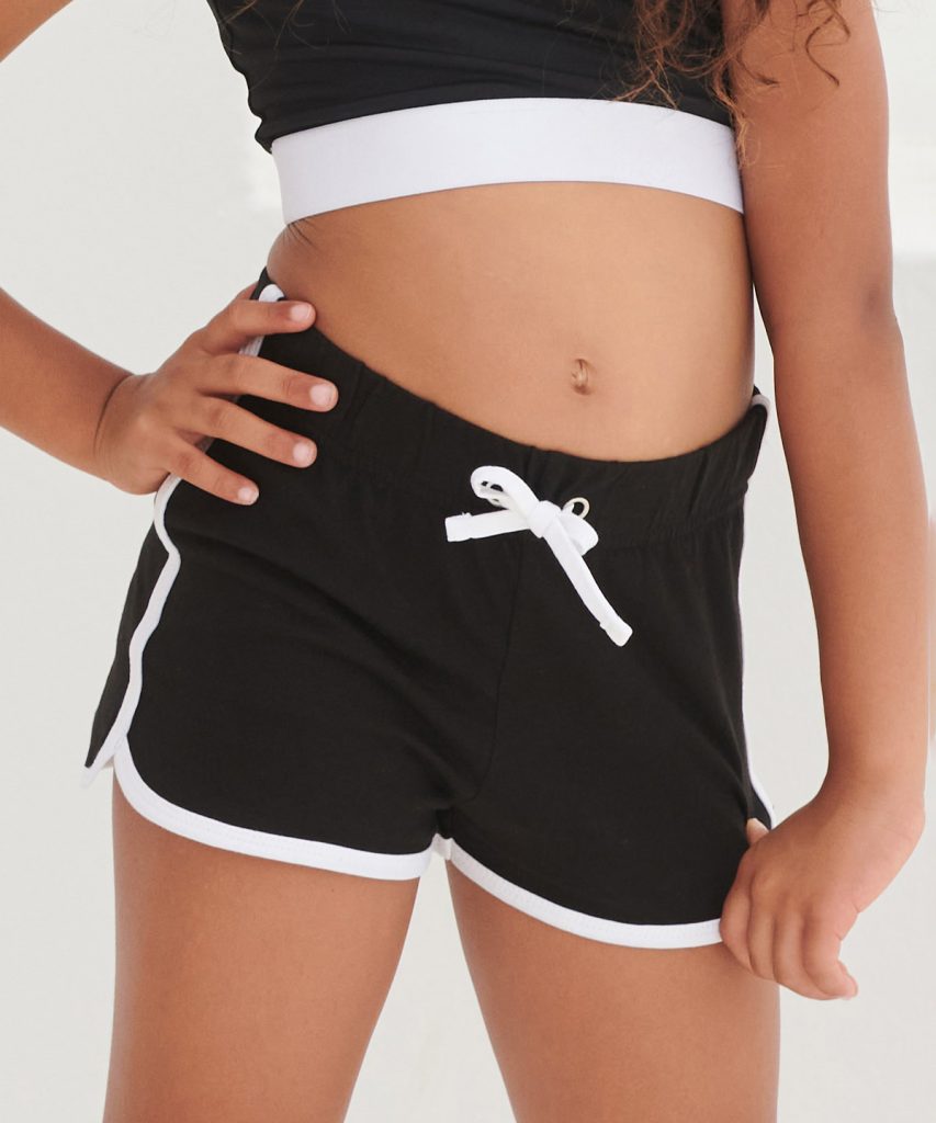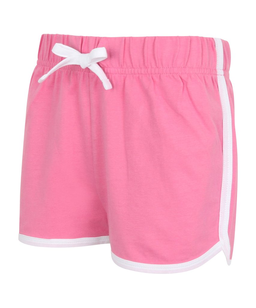 Take a sporty route to fashion with the popular retro shorts. Great style and freedom to move combined in these retro look shorts with contrast binding and sweet curved side hems. Modern, athletic and cool. Tear-out label, for easy rebranding.