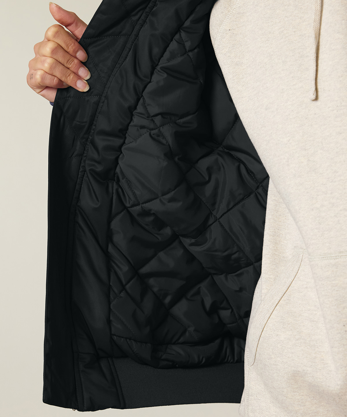 Premium unisex bomber jacket in 100% recycled polyester. Timeless, versatile style in a medium fit. Improved padding and decoration results. Ideal for music merchandise.