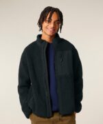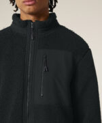 Premium unisex Sherpa jacket in 100% recycled polyester. Relaxed fit, 450gsm. Fully bonded inside fleece layer with an anti-pill finish. Contrast softshell inserts.