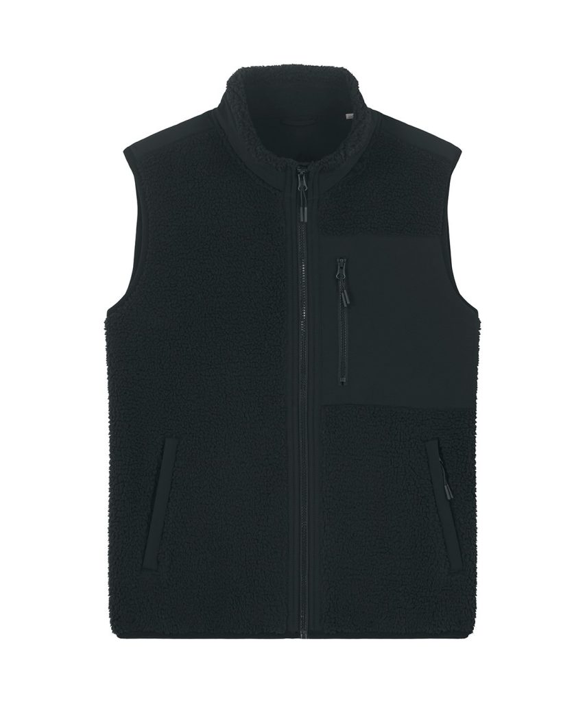 Premium, unisex, sleeveless sherpa jacket in 100% recycled polyester, 450gsm. Fully bonded inside fleece layer with an anti-pill finish. Contrast softshell inserts.