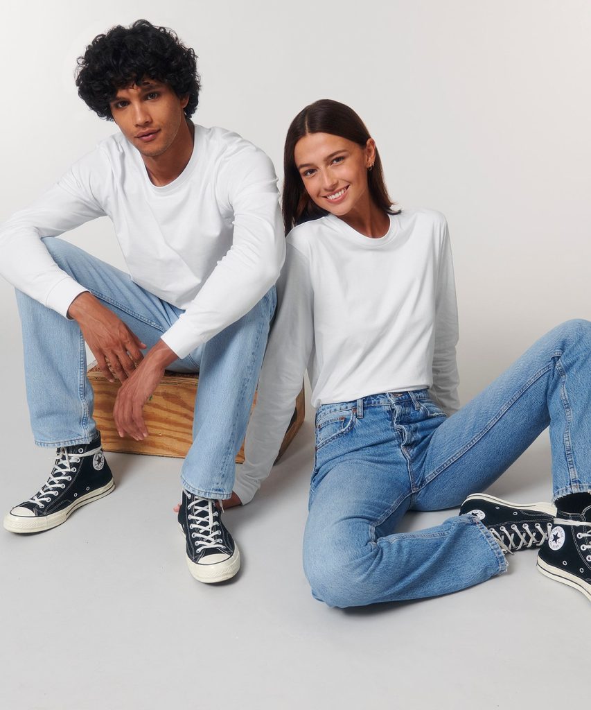The unisex dry hand feeling long sleeve t-shirt is crafted from 200gsm, 100% organic cotton with sleeve cuff and premium details.