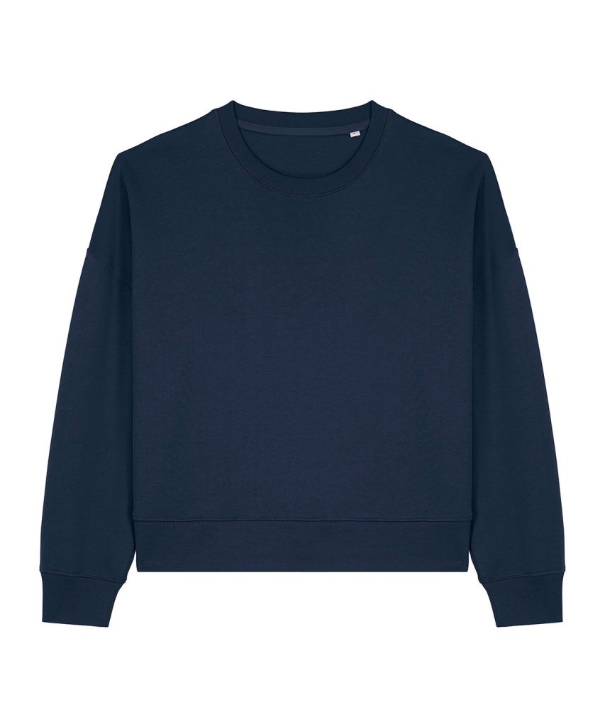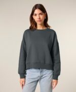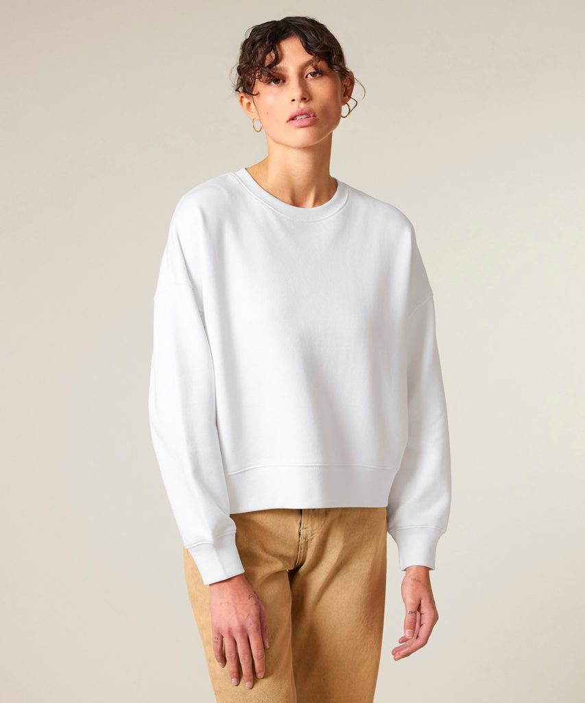 Premium womens crew neck sweatshirt in brushed 100% organic cotton, 300gsm. Dropped shoulders, adjusted length. Broad colour choice. Excellent printability.