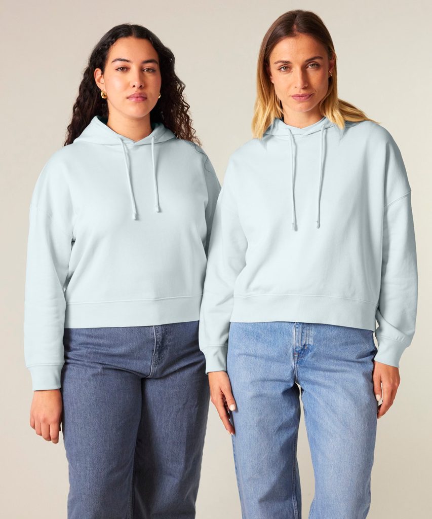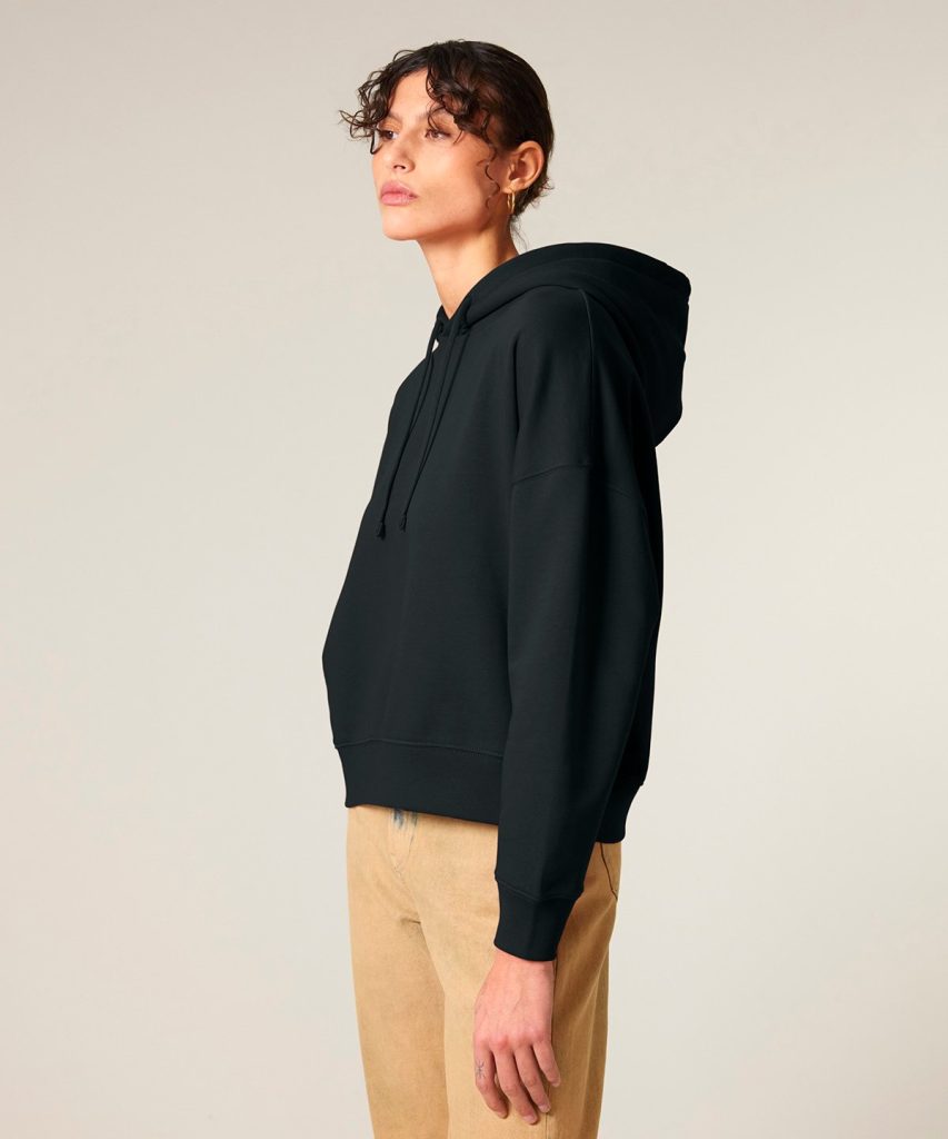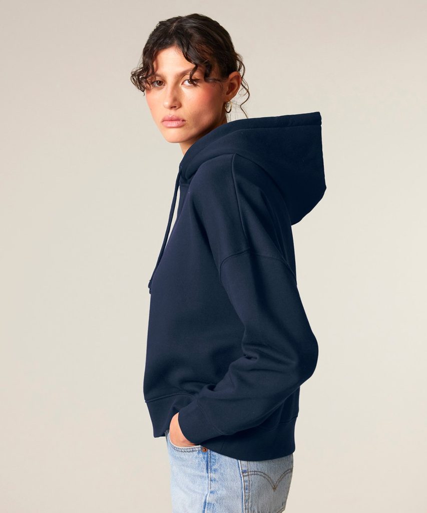 Premium womens hoodie sweatshirt in brushed 100% organic cotton, 300gsm. Dropped shoulders, adjusted length. Excellent printability.