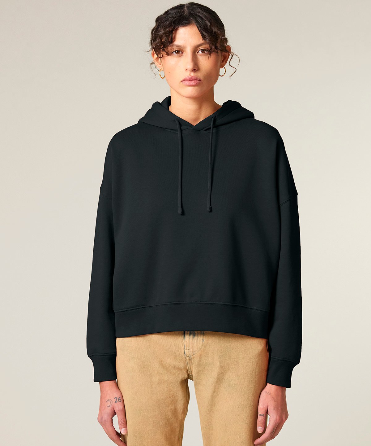 Premium womens hoodie sweatshirt in brushed 100% organic cotton, 300gsm. Dropped shoulders, adjusted length. Excellent printability.