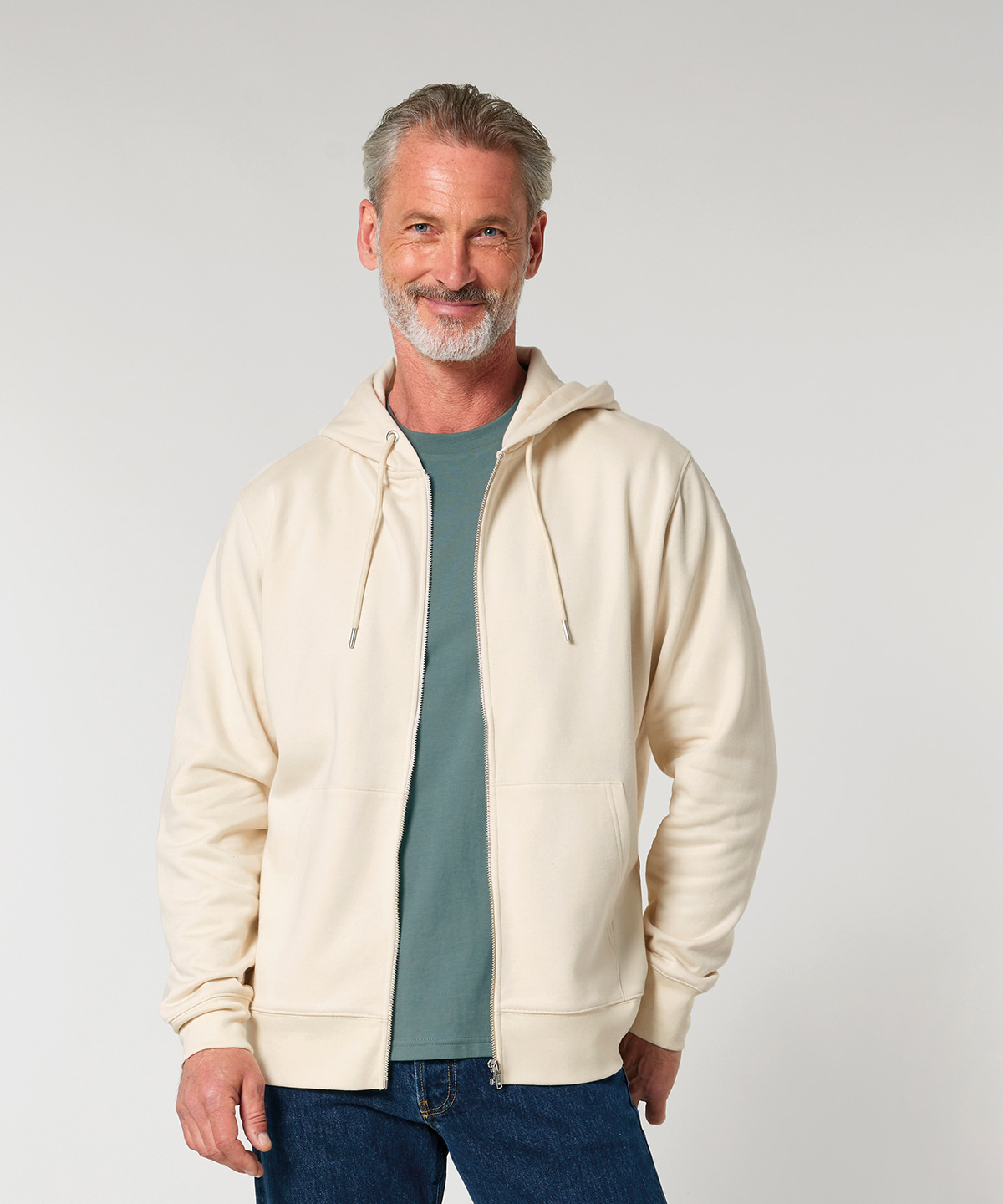 The modernised unisex Cultivator 2.0 iconic zip-thru hoodie sweatshirt now in 100% organic cotton, with a new modern medium fit and wider rib at the hem and sleeve cuffs, as well as improved drawcord quality and closed metal drawcord endings. It also offers better decoration results than before, plus a deep and vibrant colour palette to choose from.