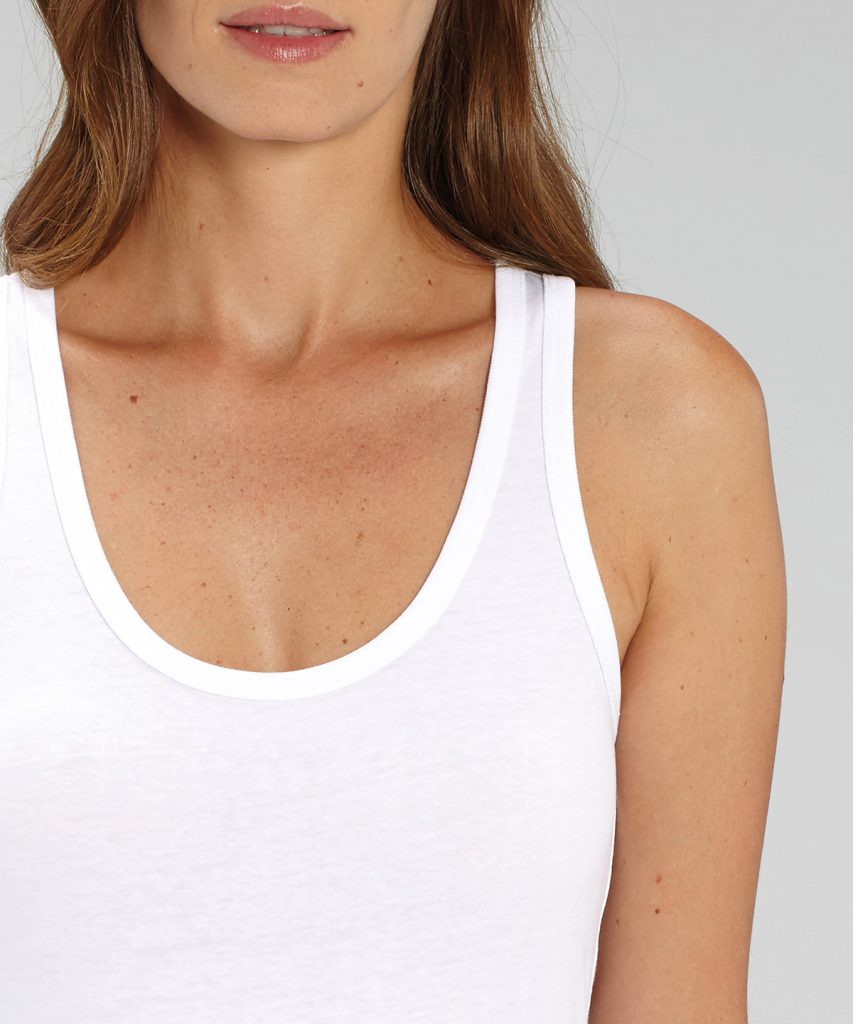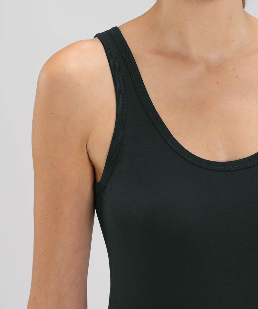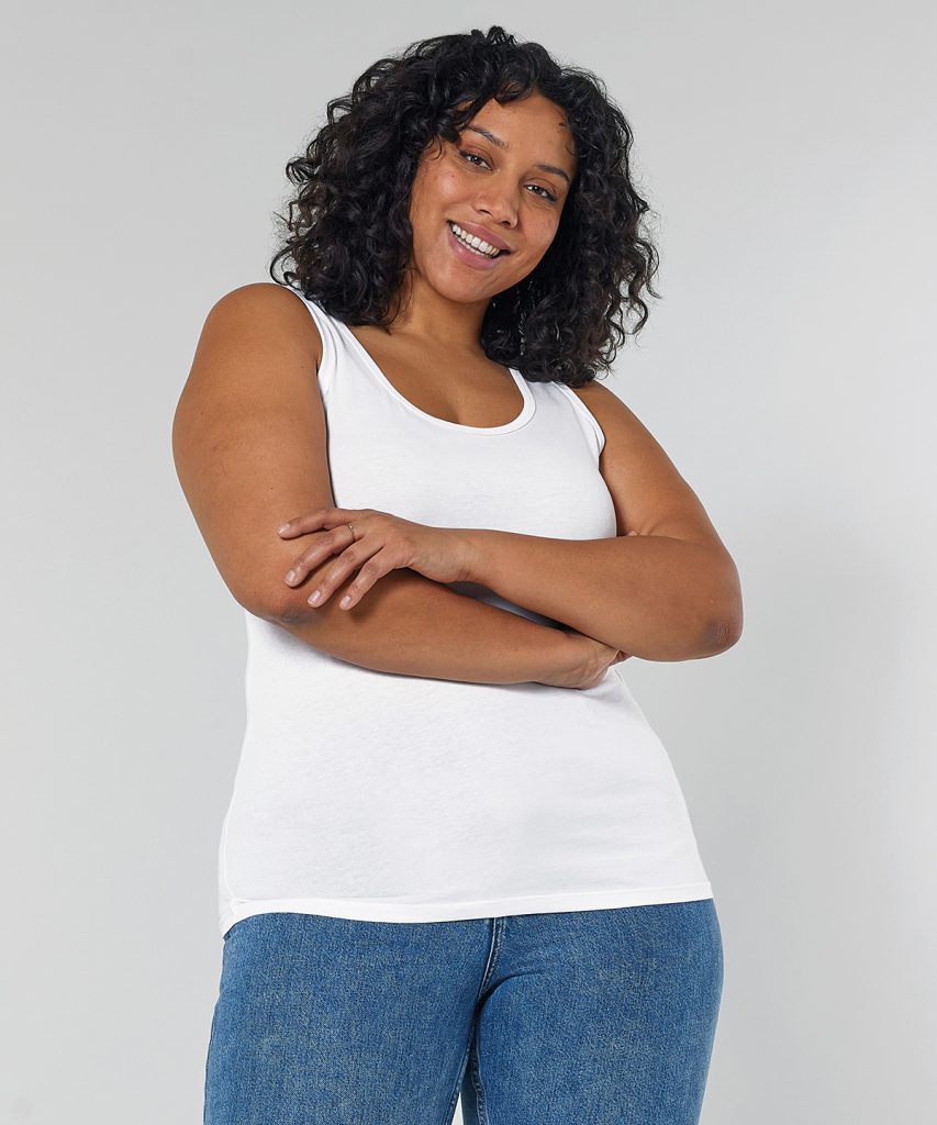 The iconic womens tank top is her ultimate wardrobe staple. A modern scoop neck tank top in 120gsm organic cotton, complete with narrow binding at the neck and armholes, with 3mm 2-needle top-stitching.