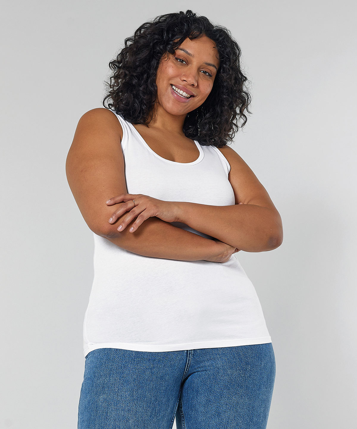 The iconic womens tank top is her ultimate wardrobe staple. A modern scoop neck tank top in 120gsm organic cotton, complete with narrow binding at the neck and armholes, with 3mm 2-needle top-stitching.