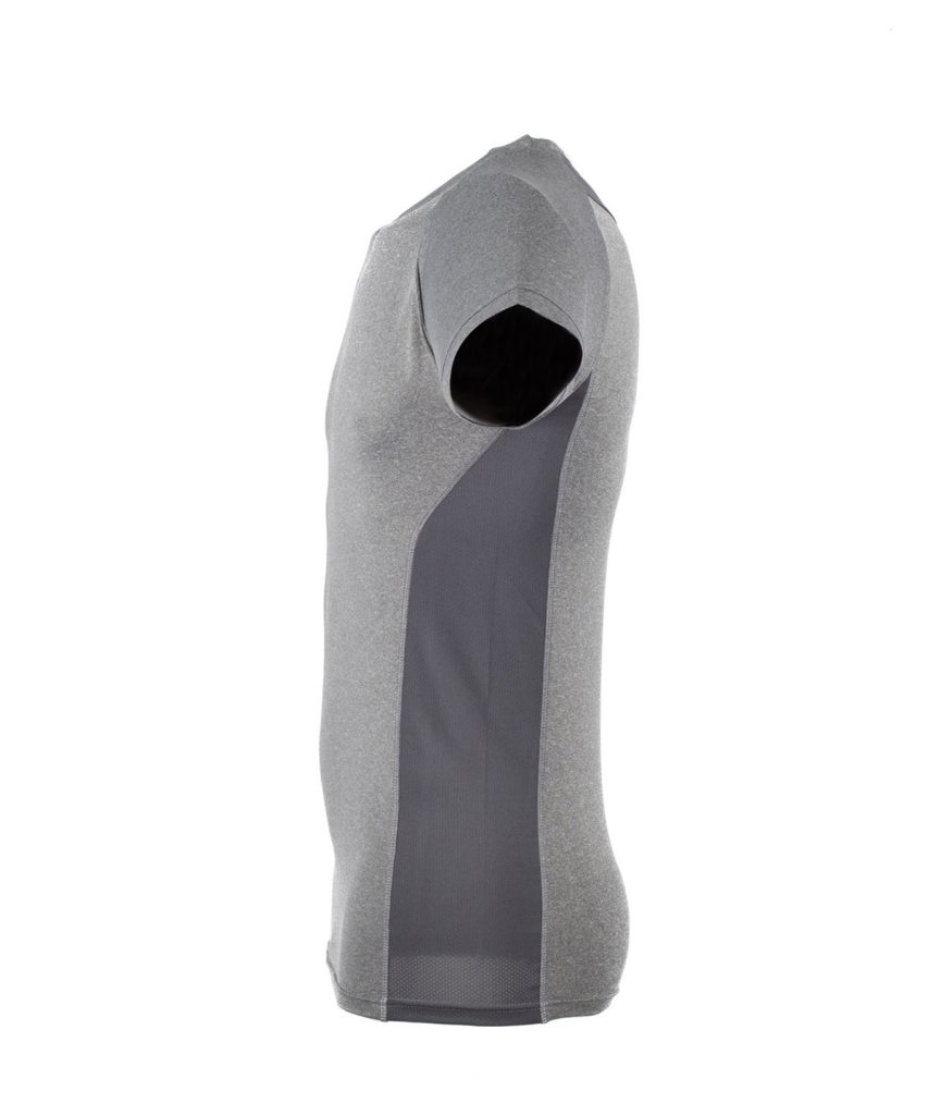Elevate your style in this slim-fit performance tee. Polyester fabric with added stretch allows you to perform at your best, while the mesh side panels add breathability and shape.