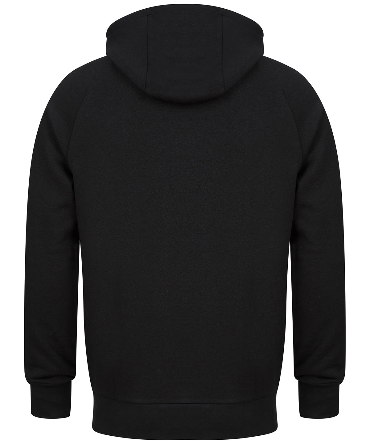 Keep it comfy in this on-trend unisex athleisure hoodie, featuring a longline slim-fit fora performance feel that also offers street style. Cut from an ultra-smooth brushed back fleece cotton-poly blend, this hoodie has an overhead hood, pouch pocket and ribbed trims for a custom fit. Finished with a tear-out label to make rebranding easy.
