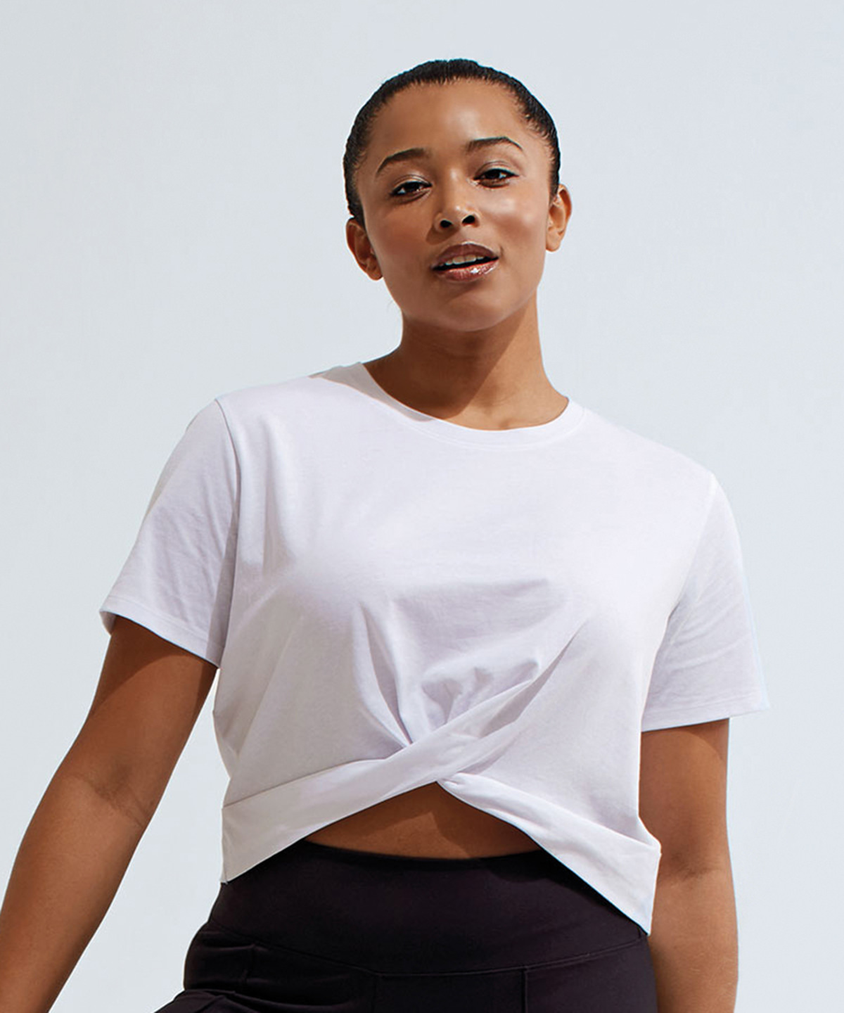 A twist on a classic meet the womens TriDri twist crop top. This flattering design looks great over a sports bra with high waist leggings. A versatile piece to add to your wardrobe, this style can easily be teamed with our flare or stirrup leggings for perfect smart-casual styling.
